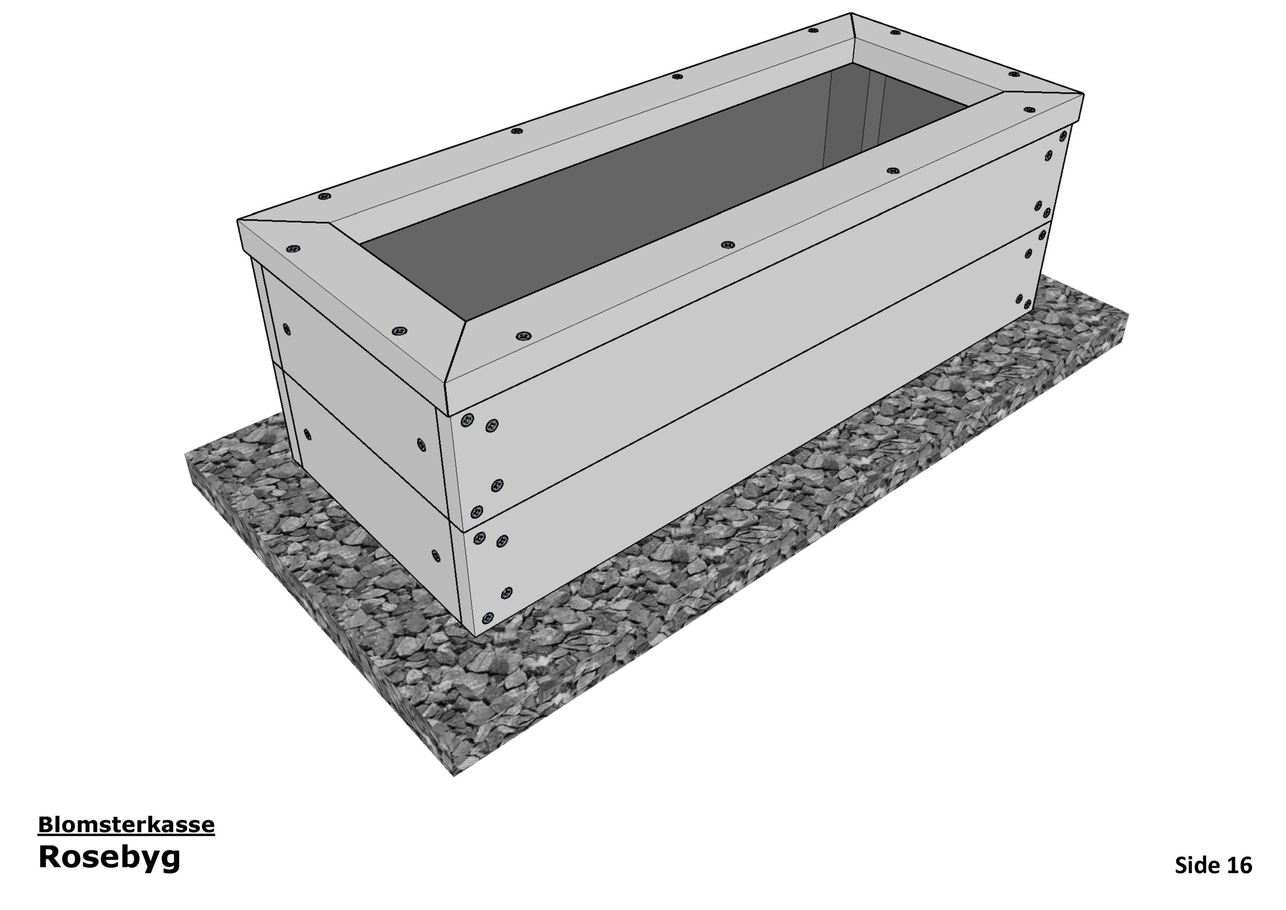 Laver du meget lang blomsterkasse kan det være en god ide at sætte ekstra forstærkning langs siderne. Disse skal naturligvis også fastgøres ligesom hjørnerne.